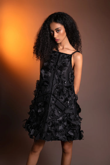 Black Sequin Violet Dress with Honeycomb Bodice