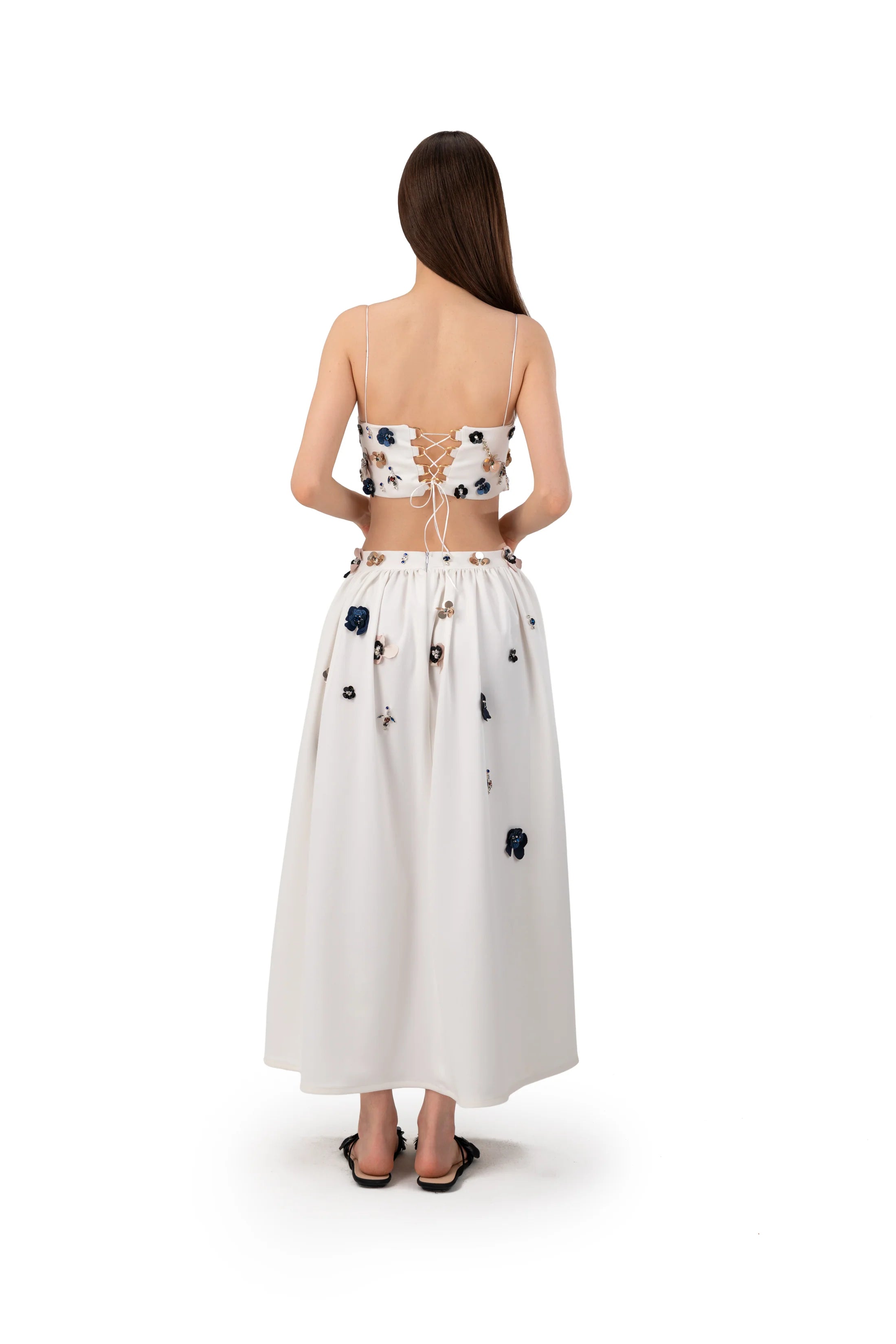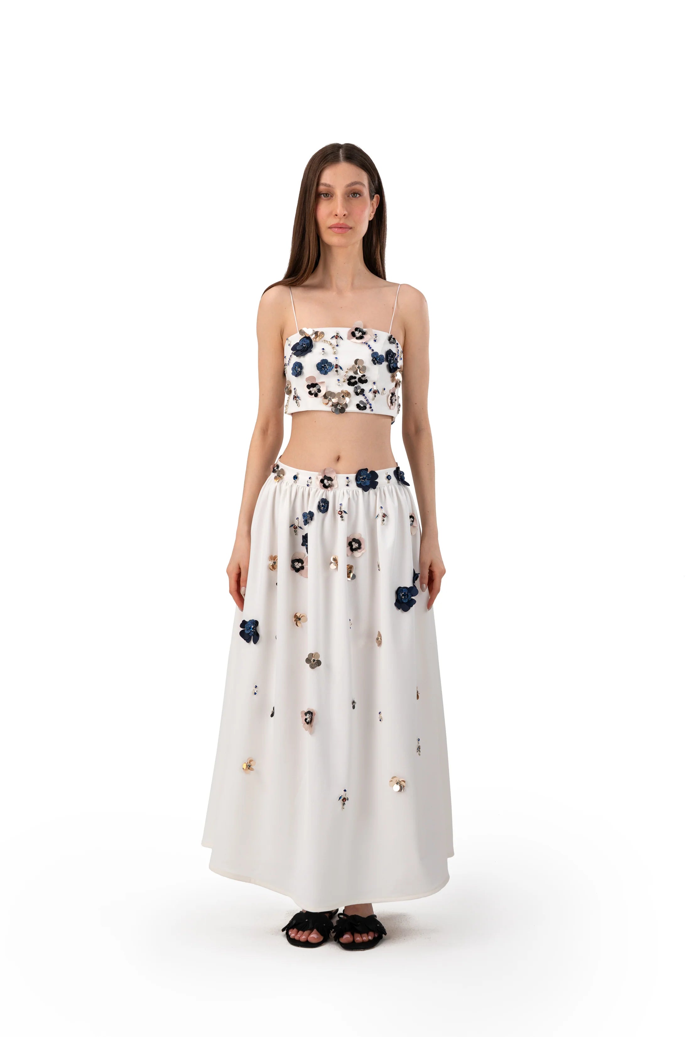 Decorated with 3D Floral Appliqué in Blue, Beige, and Black