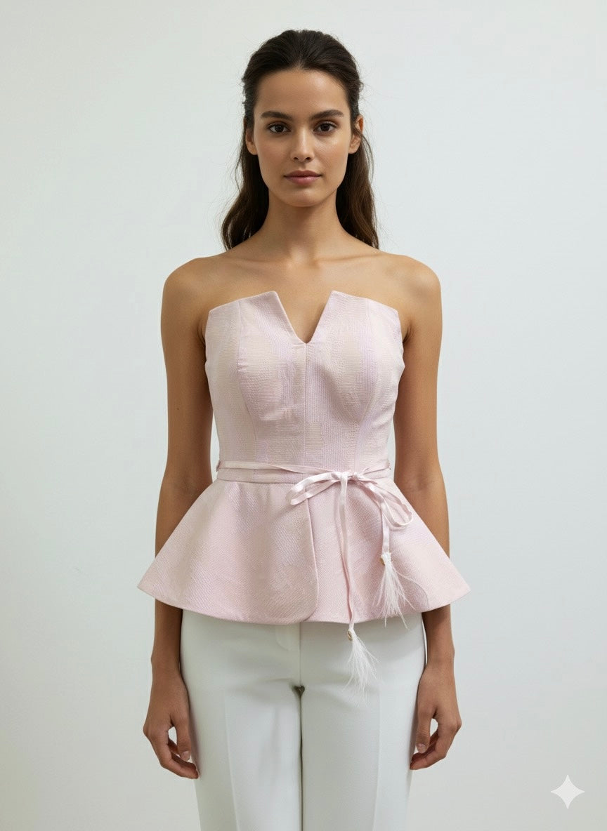 - Chic strapless peplum top in soft blush pink