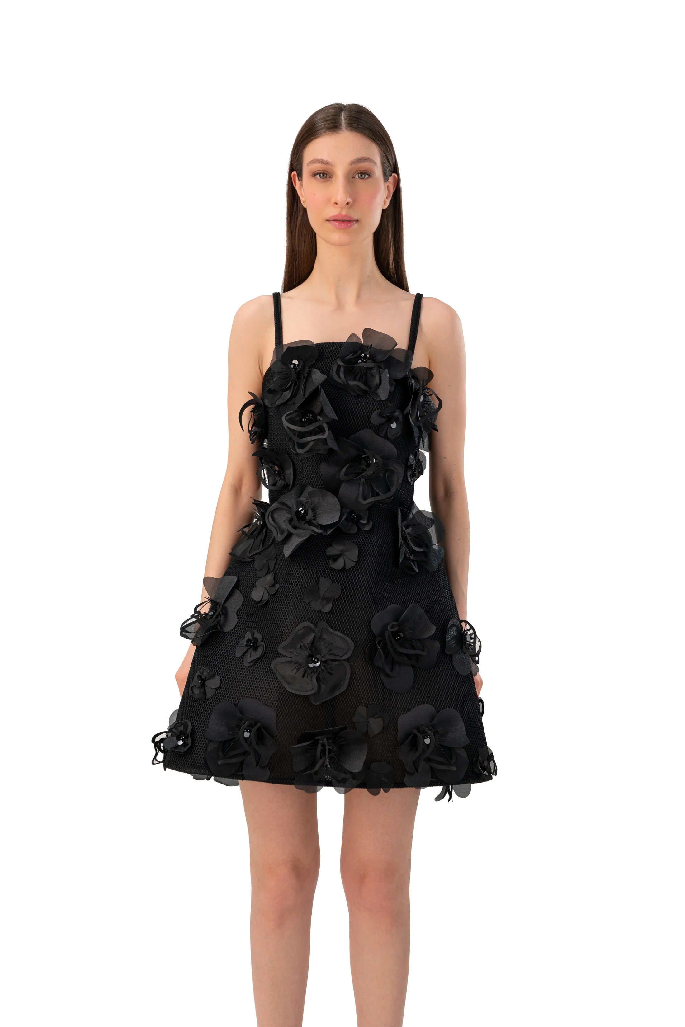 Sheer Mesh Base with 3D Oversized Floral Appliqué