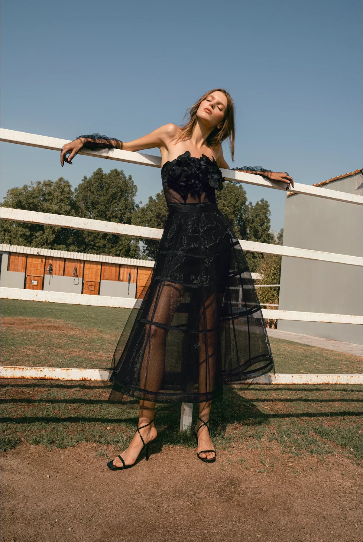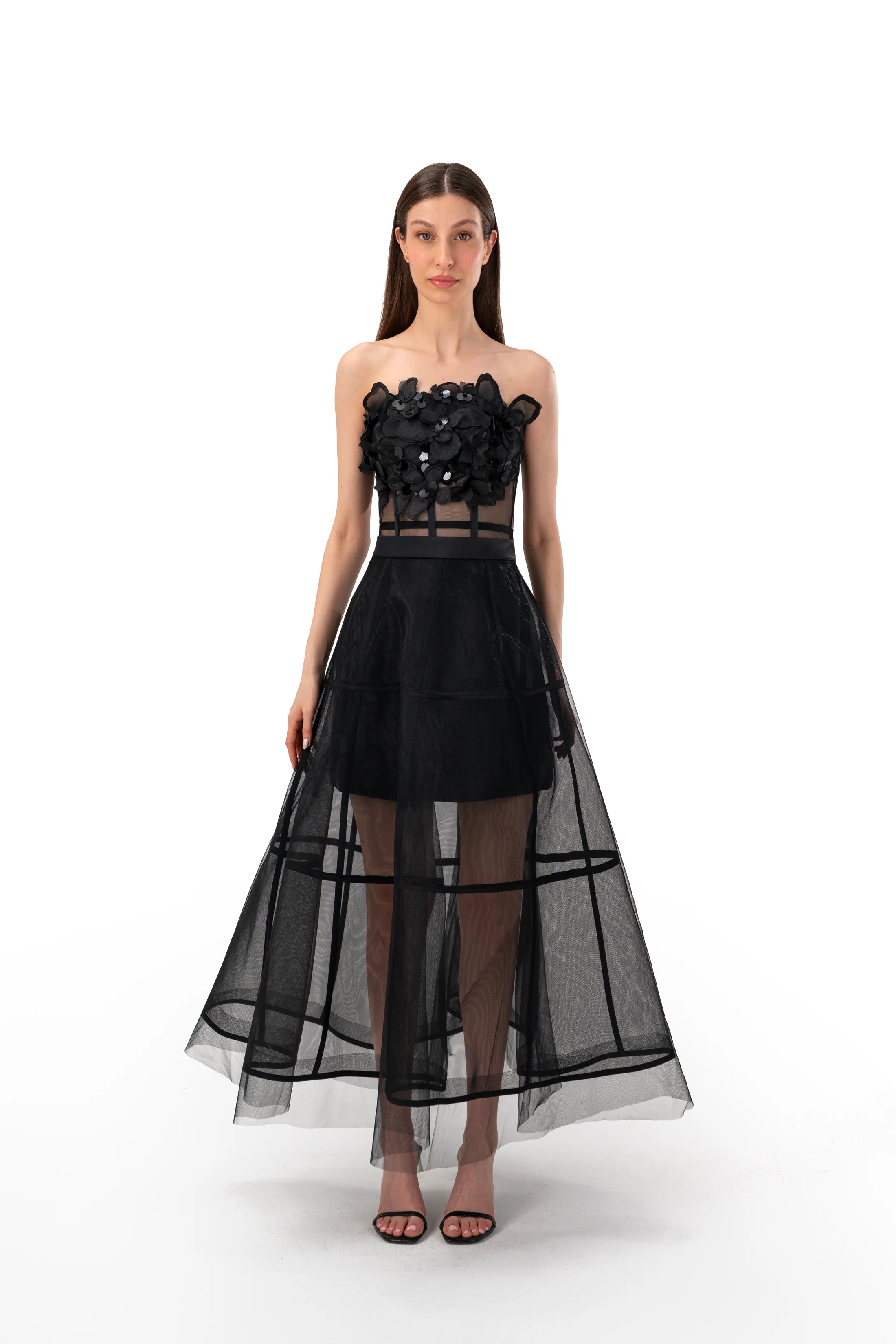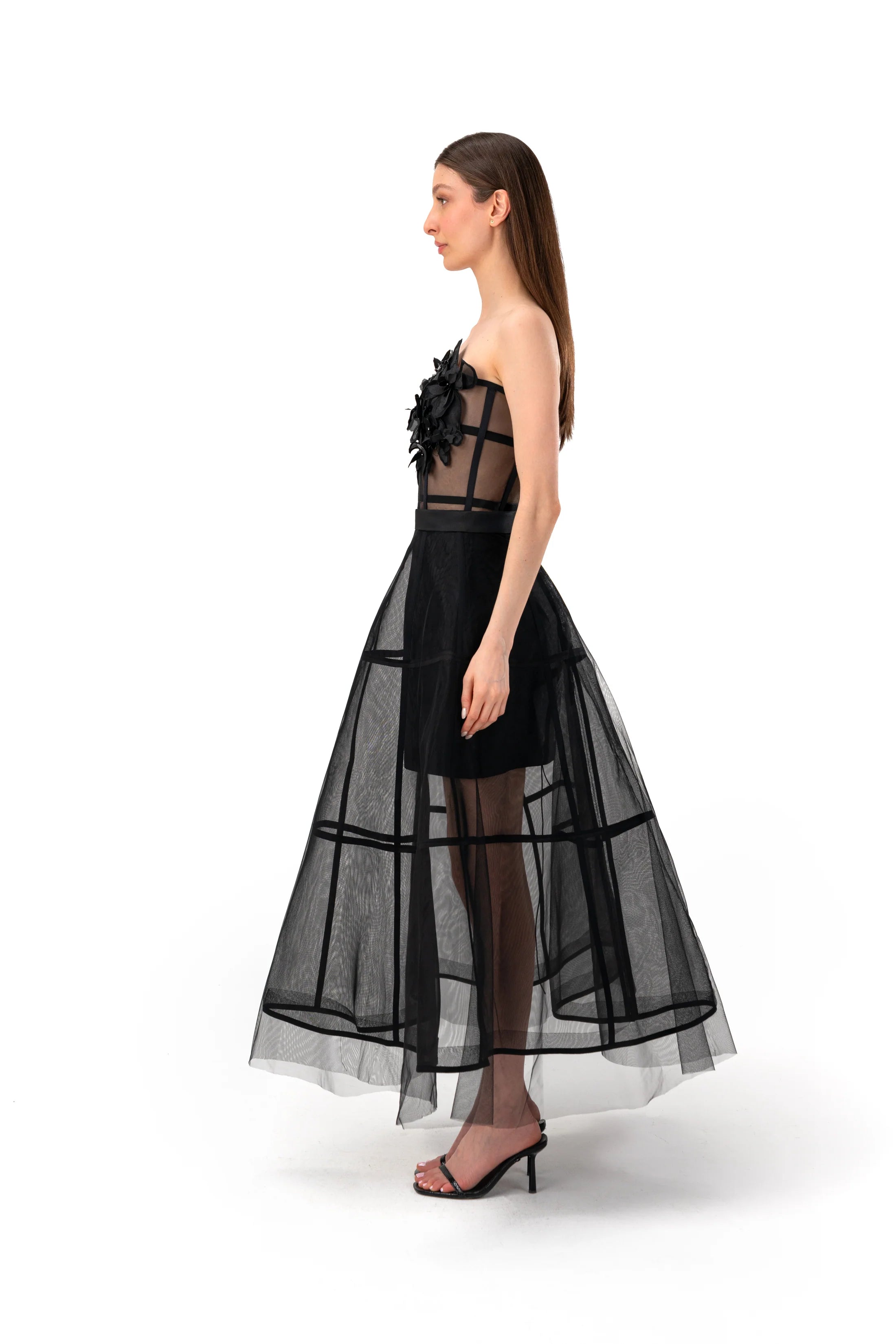 Sheer Mesh Organza Base with Structured Hoop Detailing