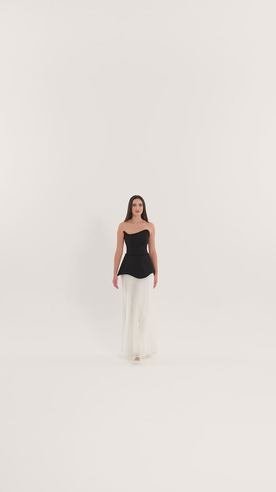 Contrasting white maxi skirt with soft pleated design for graceful flow