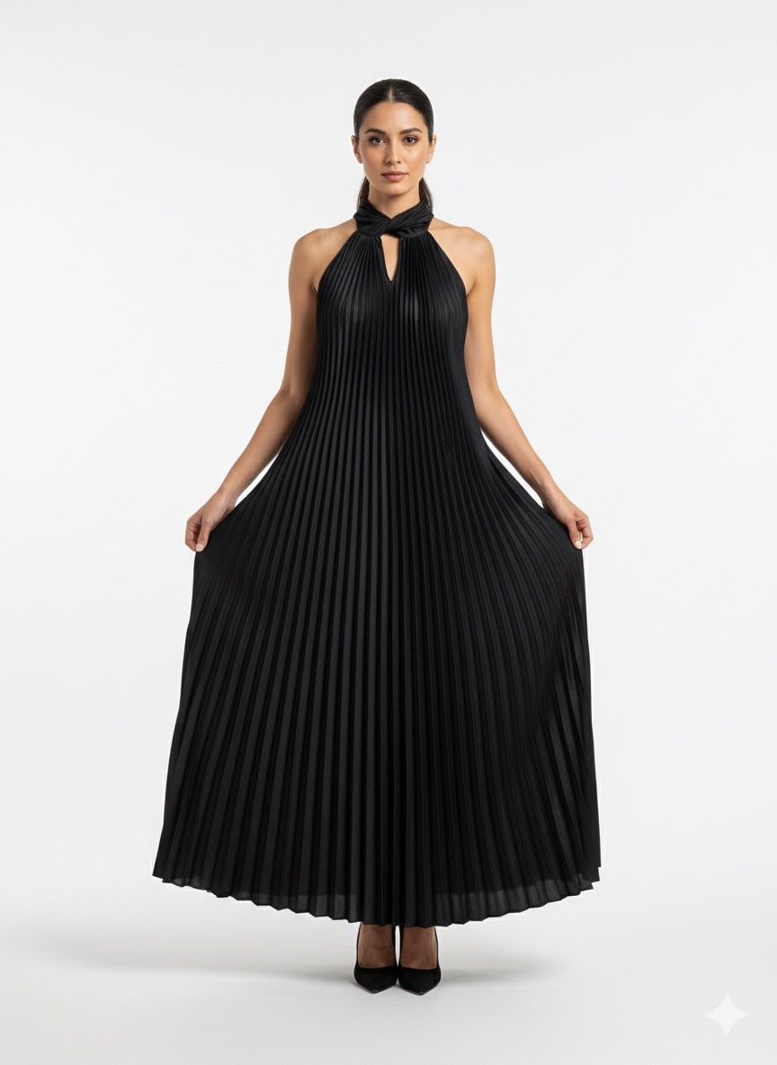 Add a touch of “Unique Elegance” to your collection with this stunning black pleated dress. Perfect for making a statement wherever you go!