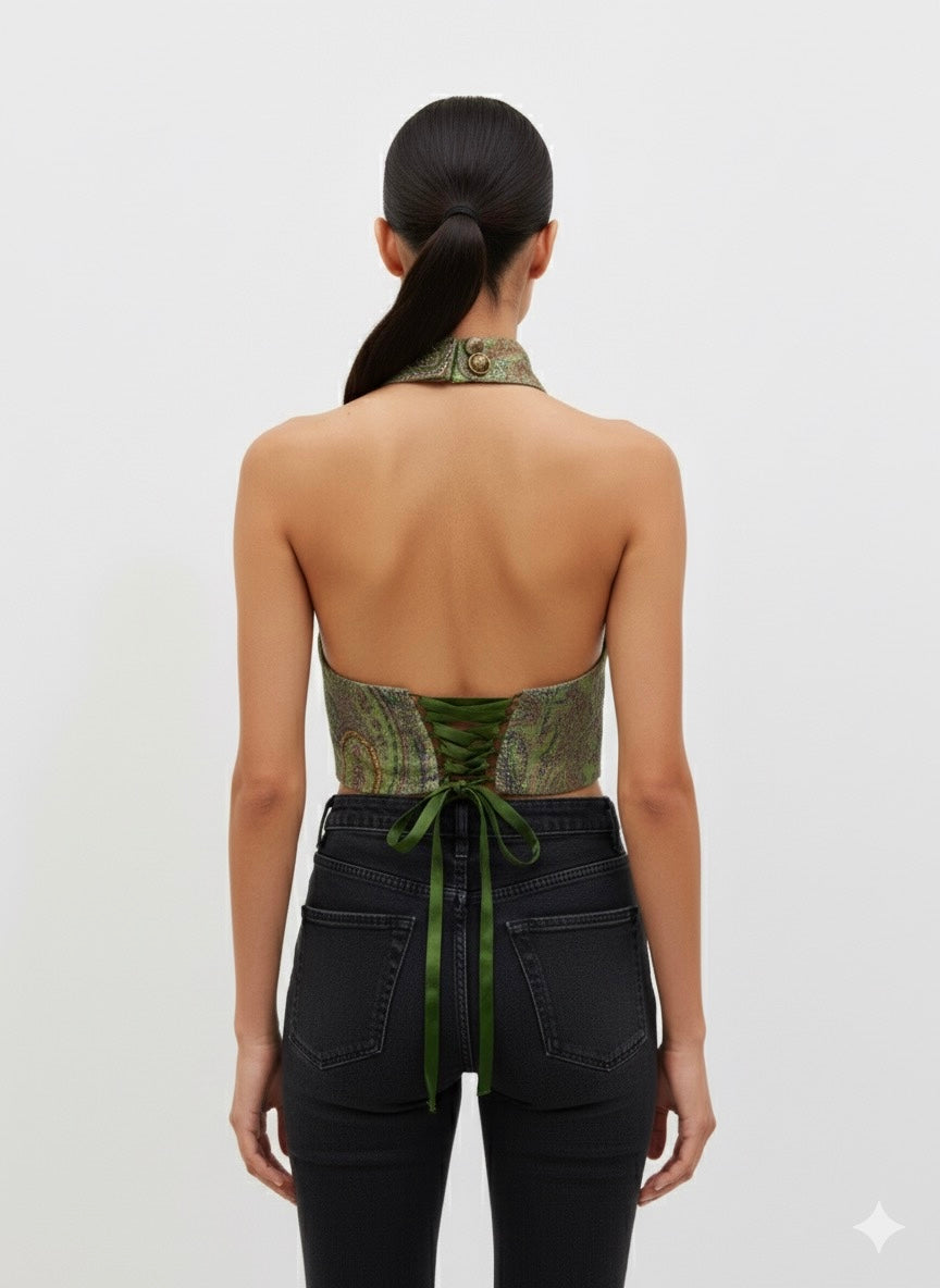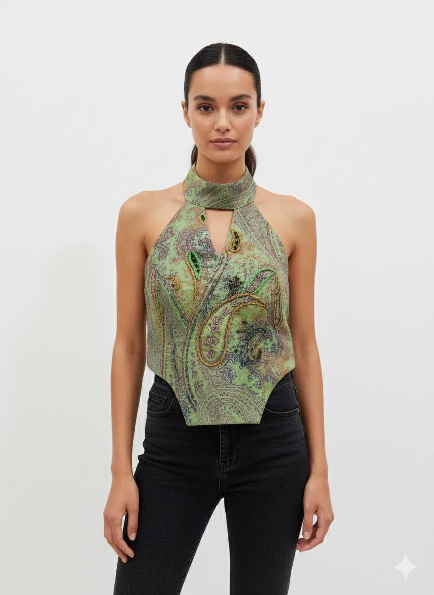 • Elegant halter-style top inspired by Persian Termeh fabric