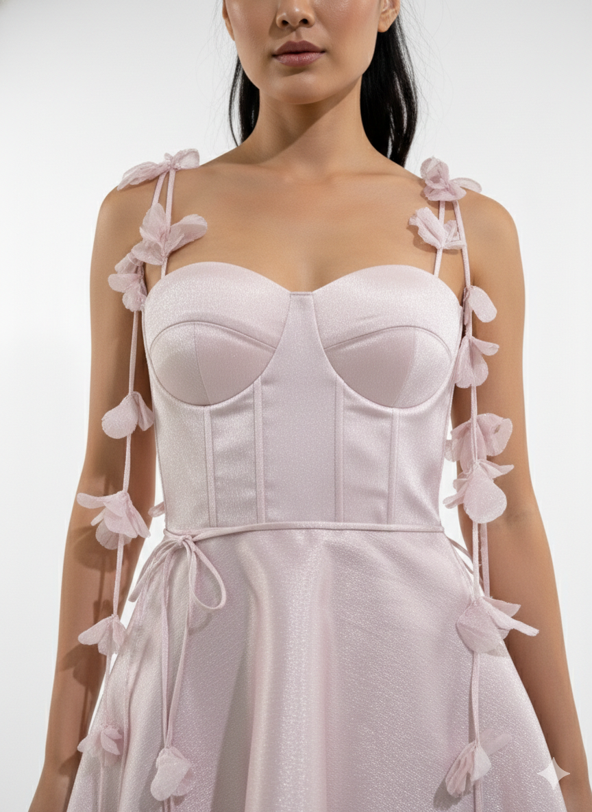 Silk Flower Short Dress Pink