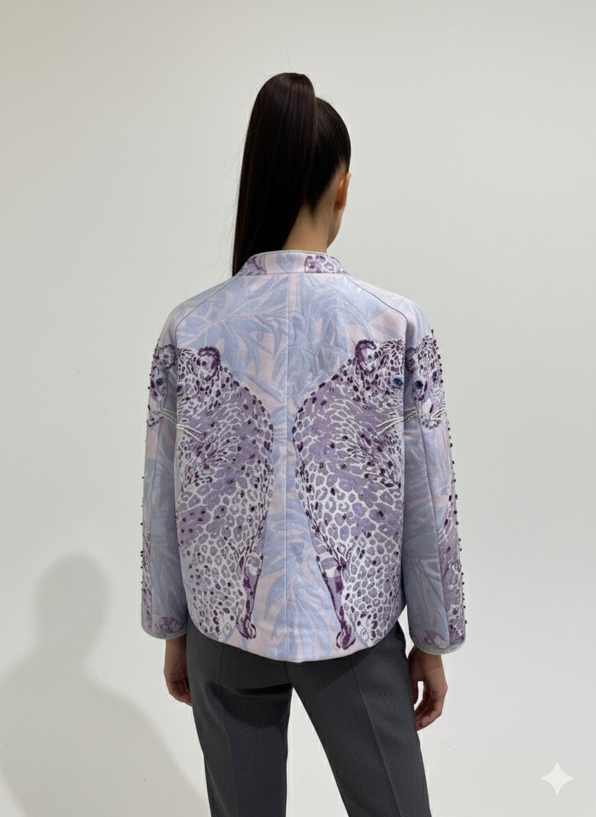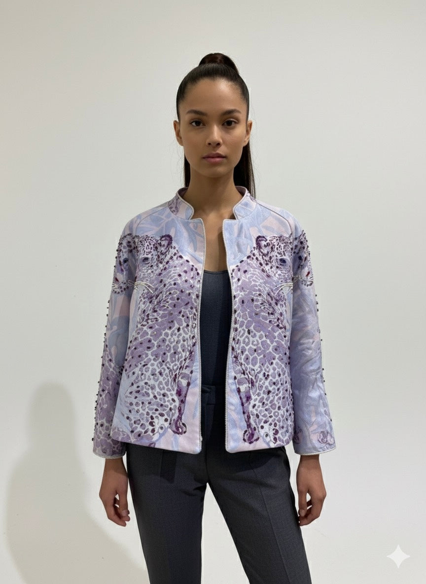 Add a touch of “Unique Elegance” to your wardrobe with this exquisite lilac embellished jacket. Perfect for making a statement wherever you go!